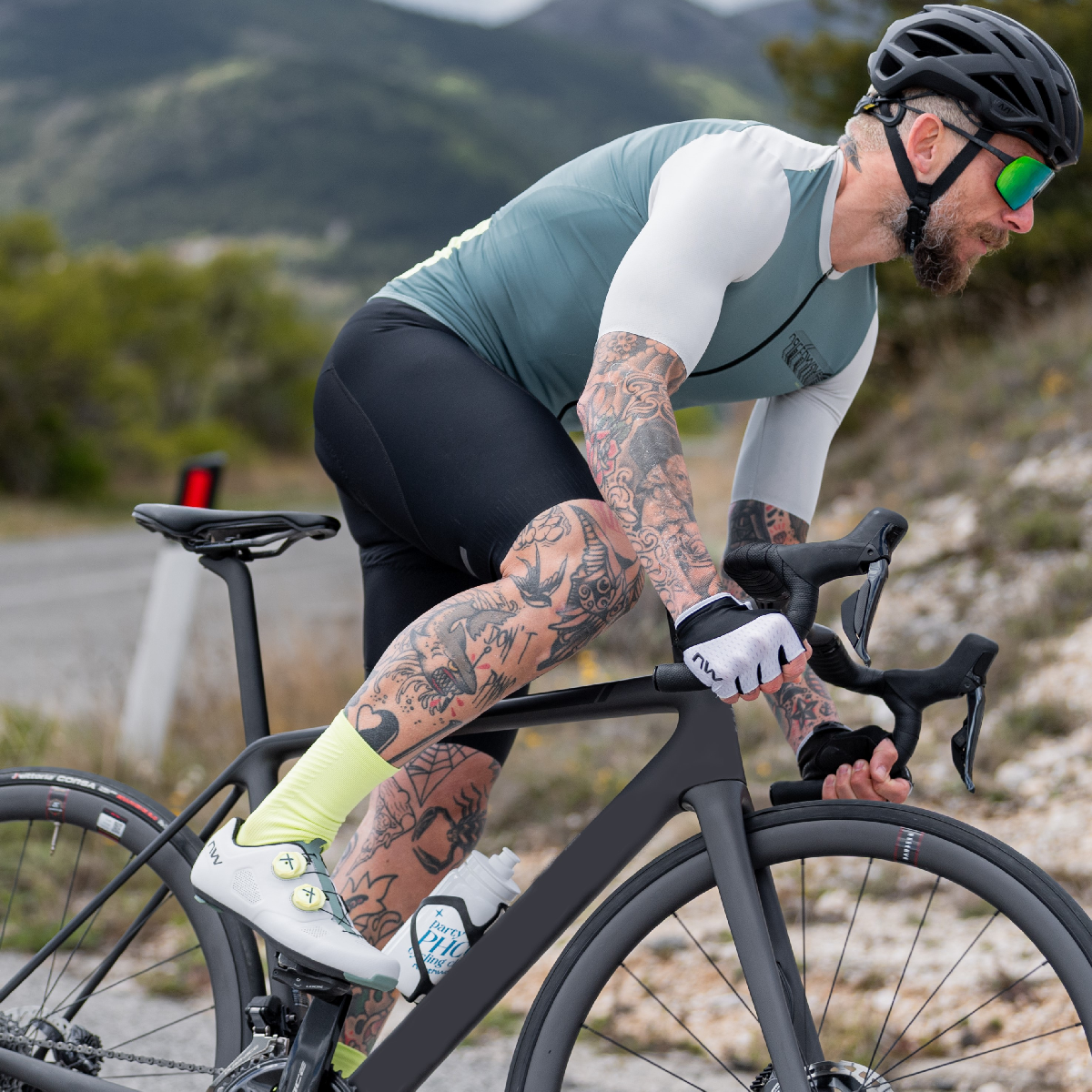 La matière de dessus de double couche de ces chaussures de cyclisme est conçue à partir d’un cuir synthétique en PU performant et d’un mesh Airnet respirant. Il y a des trous d'aération sur les côtés qui apportent une ventilation supplémentaire dès que vous roulez à toute vitesse sur la route. Les molettes de fermeture SLW3 permettent un ajustage micrométrique même spontanément en route pour profiter d’un port idéal. Enfin, la semelle MORPH CARBON est au cœur de la performance de ces chaussures pour la route, car elle rime avec une rigidité élevée et la forme Powershape optimisée selon l’anatomie, sans au détriment du confort.
