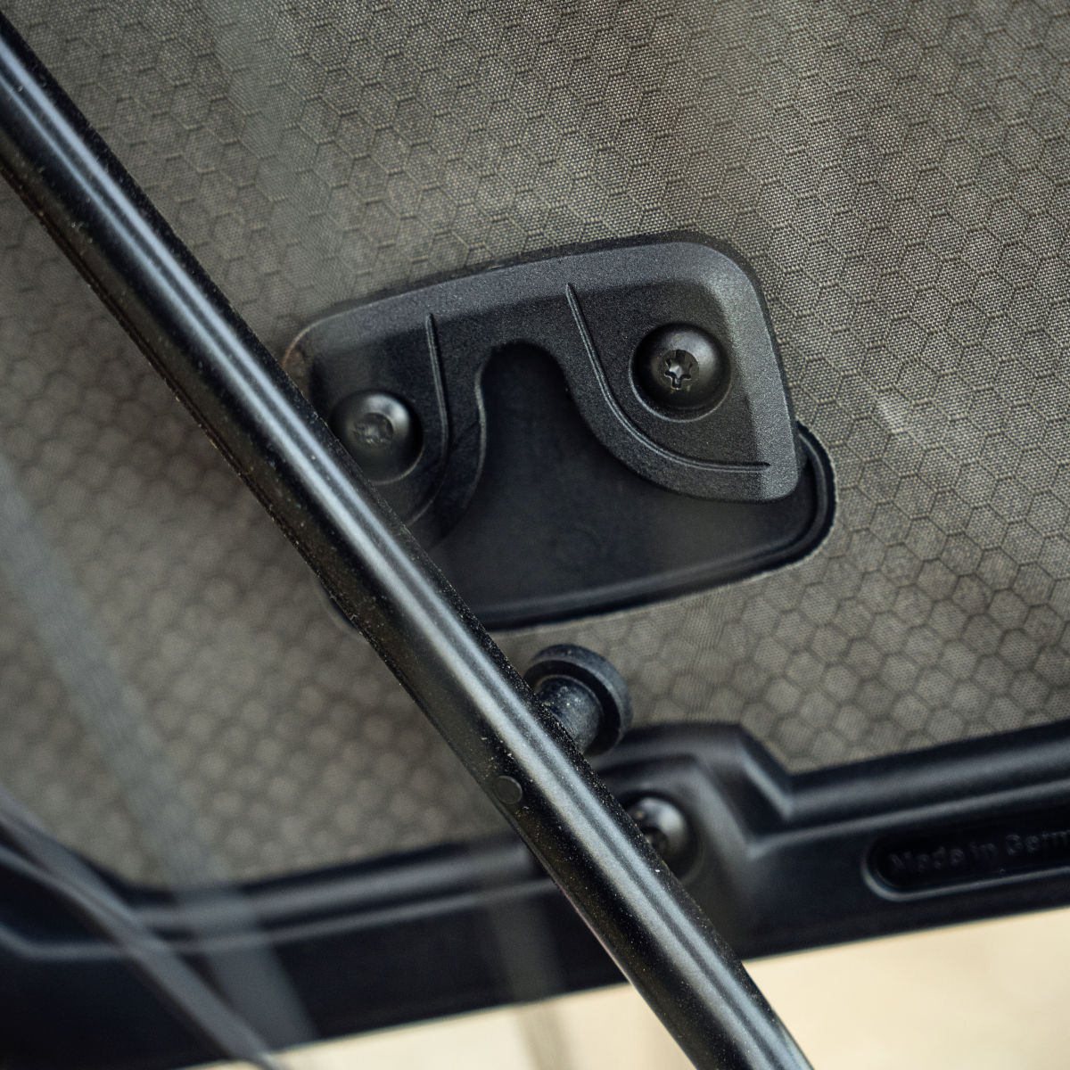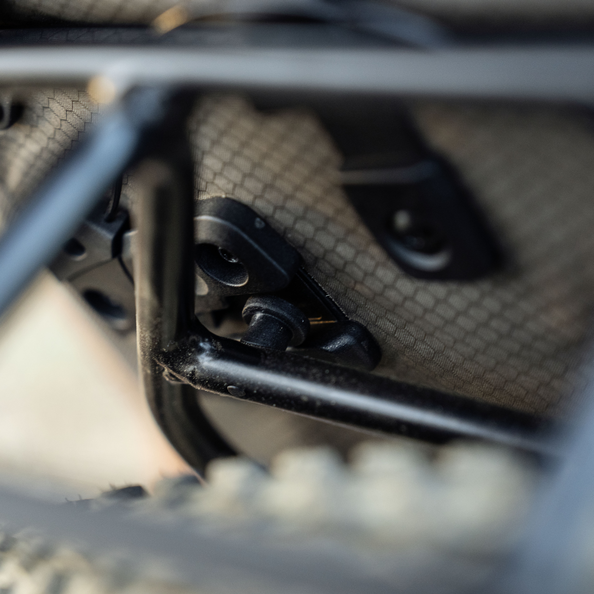 Pour le démontage, il faut juste desserrer la fixation sur le tube de selle ainsi que les deux leviers de blocage aux points d'appui et vous pouvez déjà retirer le porte-bagages. Les deux points de support sur les œillets demeurent sur le vélo.