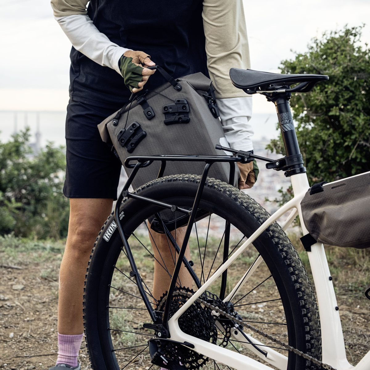 Il y a dans un premier pas deux options de montage pour le vélo: Soit vous mettez en place le Quick Rack avec l’axe traversant adaptateur THRU AXLE M6-CONNECTOR ( art. 2351000 disponible séparément) dans l’axe soit vous le montez directement au cadre dans le filetage de porte-bagages (M5/M6). Dans un deuxième temps, le porte-bagages est sécurisé au tube de selle ou à la tige de selle à l'aide de l’entretoise de fixation supérieure et d'un élastique de retenue stable. Et voilà le porte-bagages Ortlieb QUICK-RACK est prêt à l'emploi! Il est compatible avec toutes les sacoches au système Quick Lock de chez ORTLIEB (QL1/2.1/2.2/3/3.1/Top-Lock) et supporte une charge utile jusqu'à 26 kg.