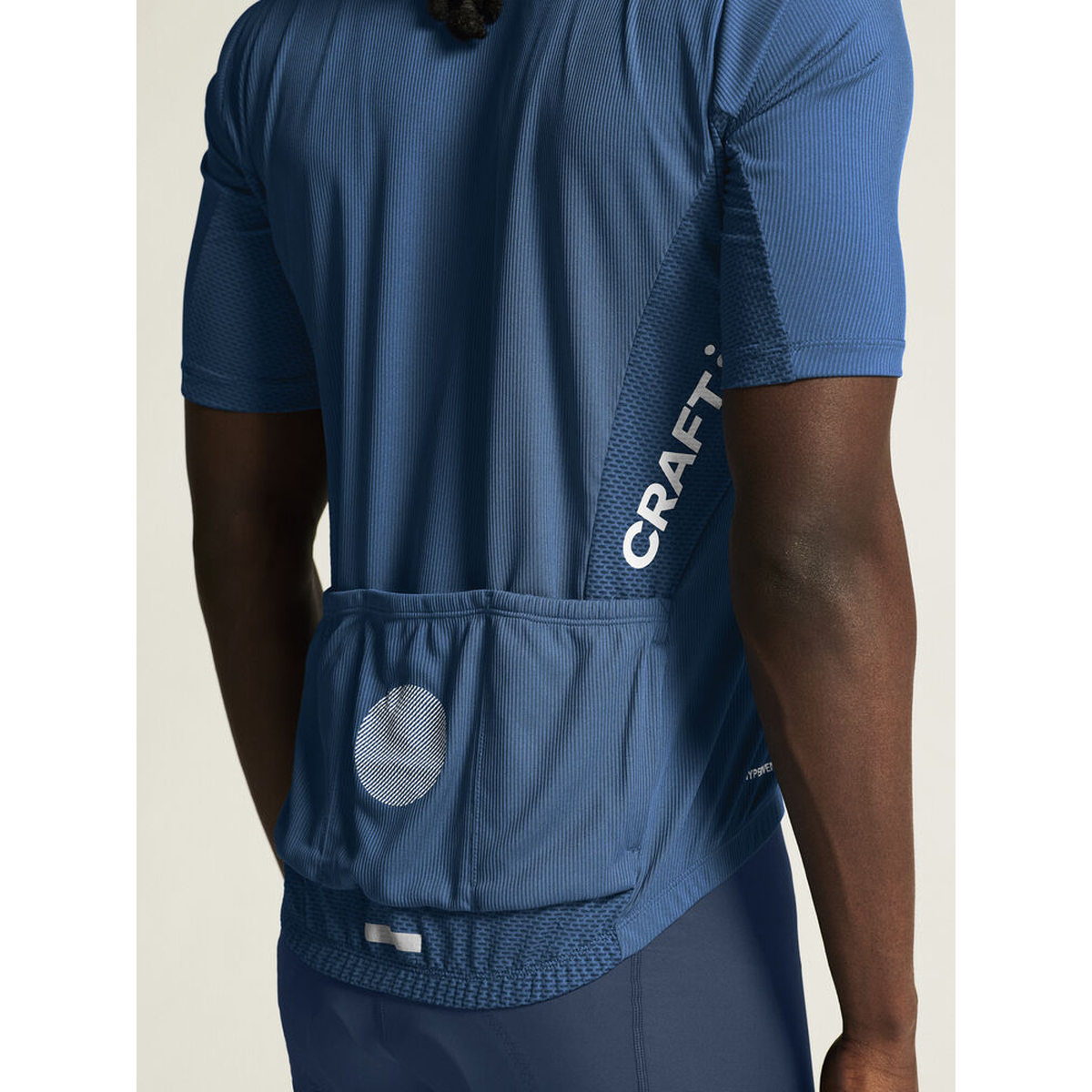 Le CRAFT ENDUR JERSEY M est un maillot de vélo pour homme en matière douce et élastique qui transfère parfaitement bien l’humidité par sa structure côtelée lors de sorties plus intenses. Les inserts en mesh aux zones stratégiques comme le haut du dos, les aisselles et les côtés assurent une ventilation supérieure lorsque vous pédalez à toute allure. En plus, le haut à manches courtes dispose de trois poches arrière et d'une poche de sécurité zippée supplémentaire pour accueillir vos affaires les plus importantes.