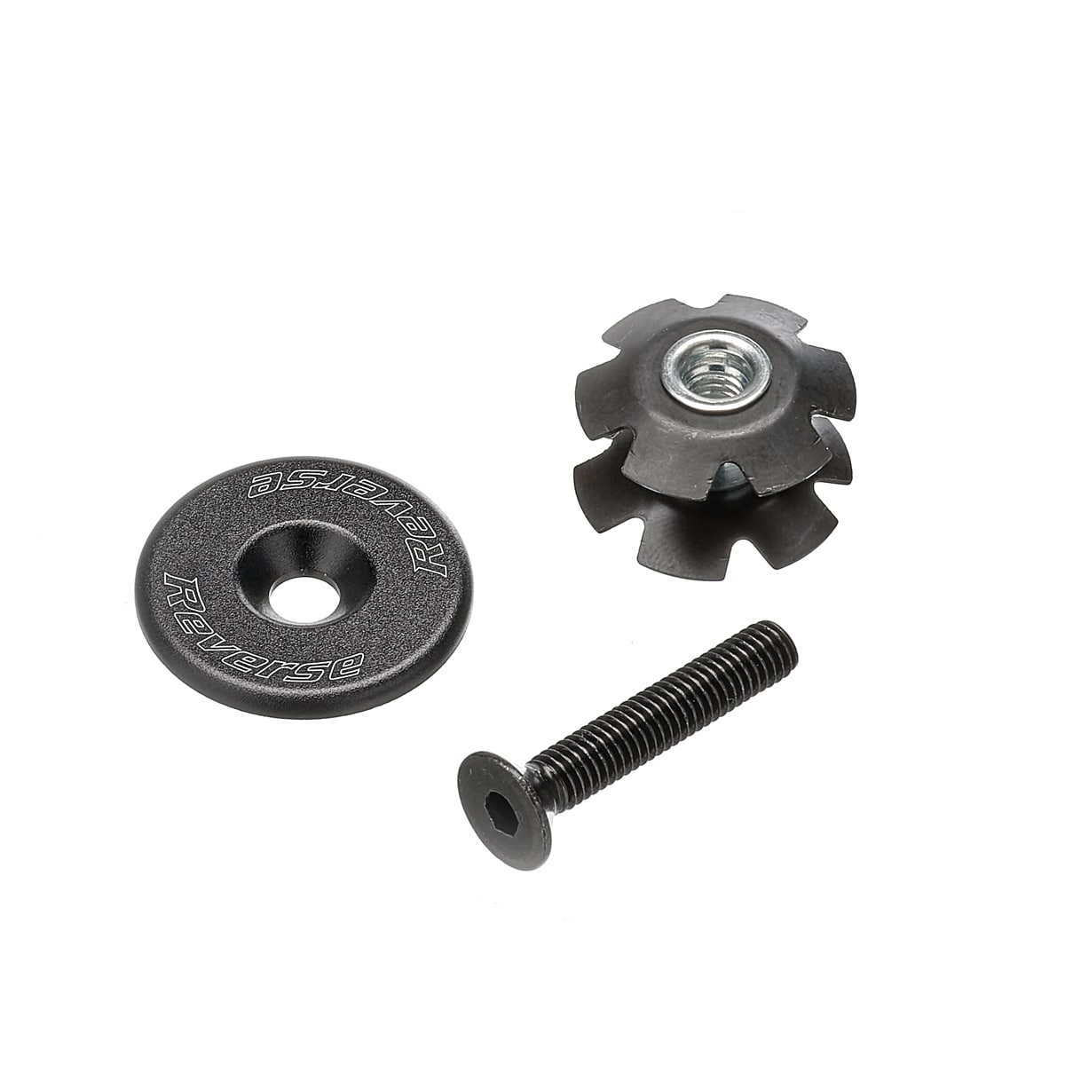 Un bouchon de potence courant avec un logo Reverse discret, y comprises l’étoile en acier et une vis de fixation.