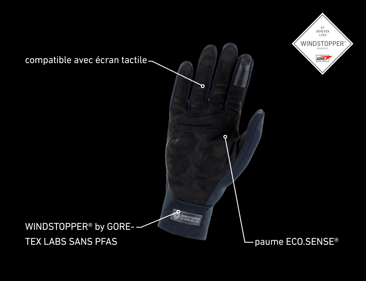 • dessus de la main en matière WINDSTOPPER by GORE-TEX LABS 3 couches déperlante et coupe-vent