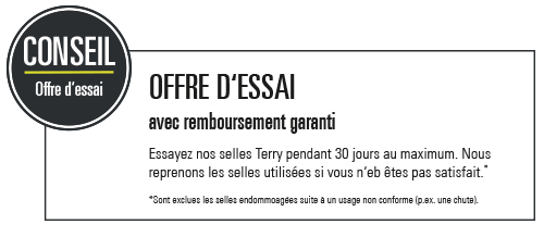 Si vous n'êtes pas satisfait, vous pouvez renvoyer la selle dans les 30 jours suivant la date d'achat et vous serez remboursé.